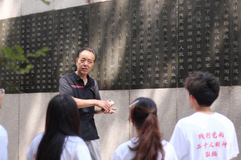 在屏南县棠口镇的新四军六团北上抗日纪念碑,实践队聆听棠口村党总支第一书记张书巡的讲解,深入了解新四军六团北上抗日的革命历史,感悟中国共产党人坚守初心使命的责任担当。