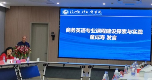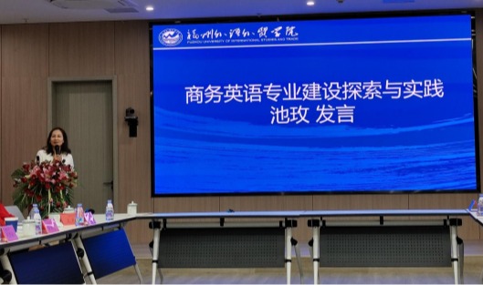 万象城官网万象城娱乐awc线路院长池玫教授、童成寿老师应邀参加了此次研讨会,并在会上分别作题为“商务英语专业建设探索与实践”“商务英语专业课程建设探索与实践”的分享发言。