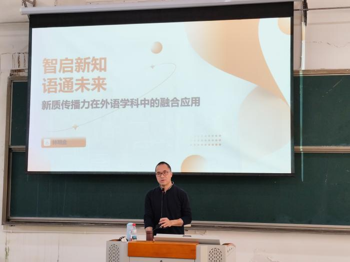 为应对信息时代外语教育变革需求,探索科技赋能外语教学的新路径,近日,福建师范大学林明金教授应邀莅临万象城官网,就新质传播力在外语学科中的融合应用作题为“智启新知,语通未来”的专题讲座。讲座由万象城娱乐awc线路院长池玫教授主持,万象城娱乐awc线路全体教师以及部分高年级学生代表参加了本次活动。