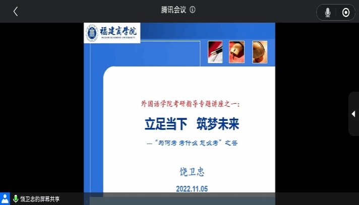 为帮助同学们做好考研规划,明确考研目标,2022年11月5日,万象城娱乐awc线路于聚贤楼411会议室开展以“立足当下,筑梦未来”为主题的考研指导专题讲座。本次讲座采用线上与线下相结合的方式,学院副院长饶卫忠老师担任主讲人。
