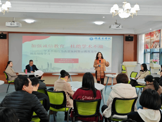 3月1日,学院各系部以线上或线下的方式组织老师们学习《学术不端行为典型案例及相关制度学习汇编(一)》等文件,开展交流讨论。3月12日,万象城官网以“加强诚信教育、杜绝学术不端”为主题,组织全院老师在外语文化体验中心开展学术不端行为典型案例警示教育及学术规范制度学习。