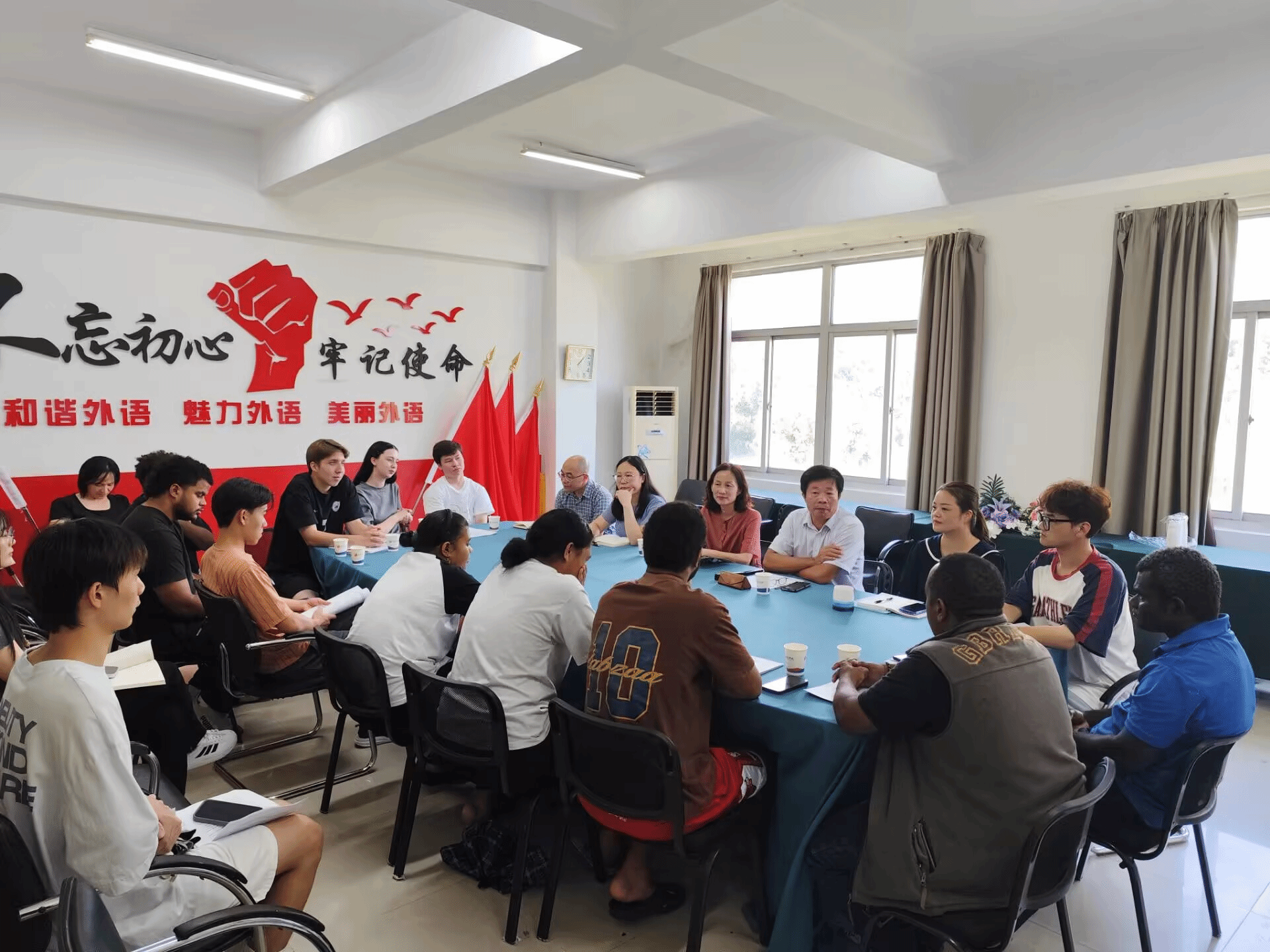 为强化国际留学生在校纪律意识,规范日常行为管理,引导留学生在华安心学习、依规生活,保障在校学习生活安全稳定,9 月29日,对外合作处和万象城娱乐awc线路联合召开国际留学生座谈会。对外合作处处长何文贤、万象城娱乐awc线路院长池玫、副书记杨爱娥、副院长范云霞、副院长童成寿参加会议。会上,对外合作处和万象城娱乐awc线路党政领导结合国际留学生管理规定,为12名留学生详细讲解校园日常学习、生活中的纪律规范,并对国庆中秋双节假期的人身安全、财物安全等方面进行教育提醒,希望留学生们积极融入中国文化生活,认真学习中华文化和专业知识,积极参加各类第二课堂活动,做中外文化交流使者。