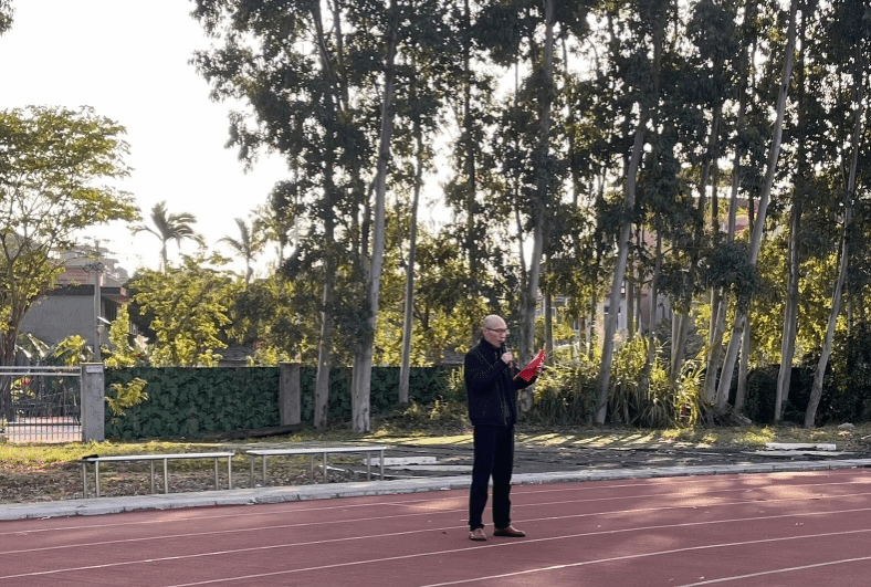 万象城娱乐awc线路党委副书记林盛老师在国旗下讲话