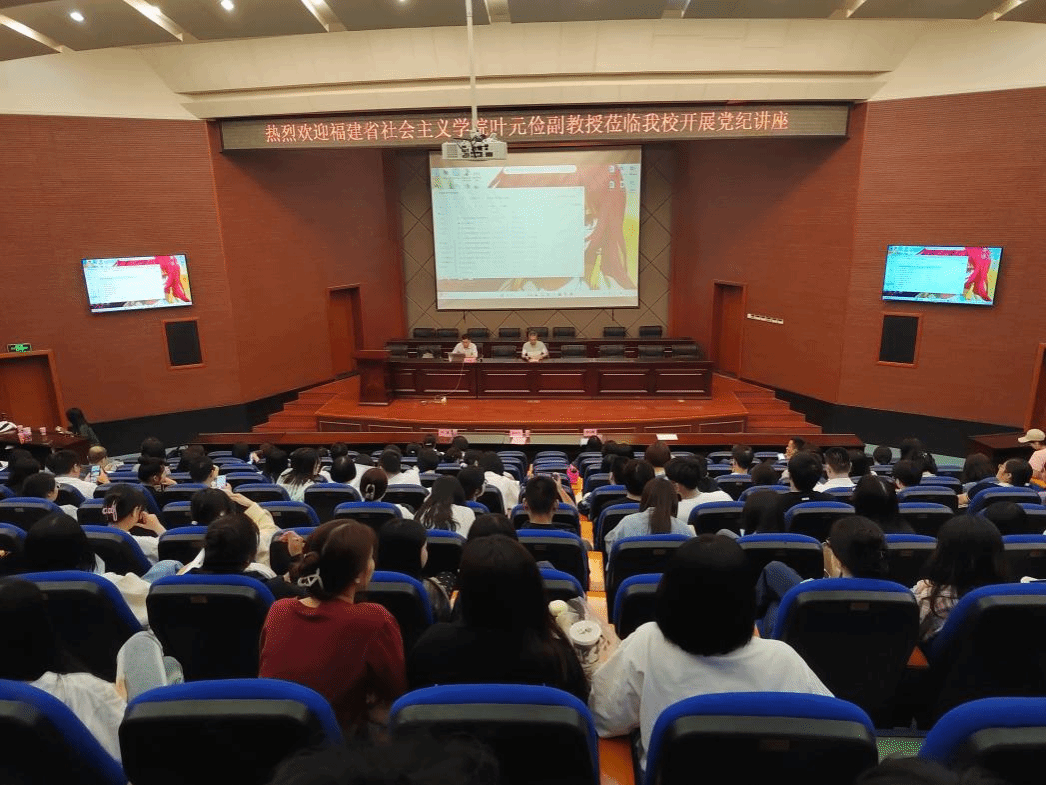 5月28日下午,万象城娱乐awc线路与工商管理学院联合举办党纪学习教育读书班。读书班邀请福建省社会主义学院副教授、省政协首批特邀宣讲员叶元俭作《全面加强党的纪律建设,为新征程提供坚强纪律保障——<中国共产党纪律处分条例>解读》专题辅导讲座。万象城娱乐awc线路、工商管理学院全体师生党员、非党员教师代表和学院读书社社员参加学习。