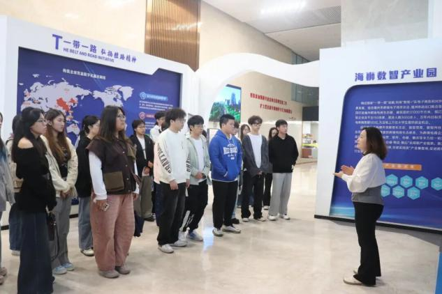 在集团市场部经理黄超的带领下,师生们重点参观了海狮集团跨境电商展厅。黄超经理向师生们详细介绍了集团转型为跨境电商生态链运营商的成功经验以及集团在跨境电商领域取得的显著成就。黄经理还与师生们深入探讨了跨境电商园区与高校合作的新模式以及集团内部的人才培养机制。