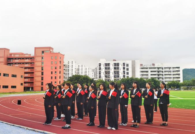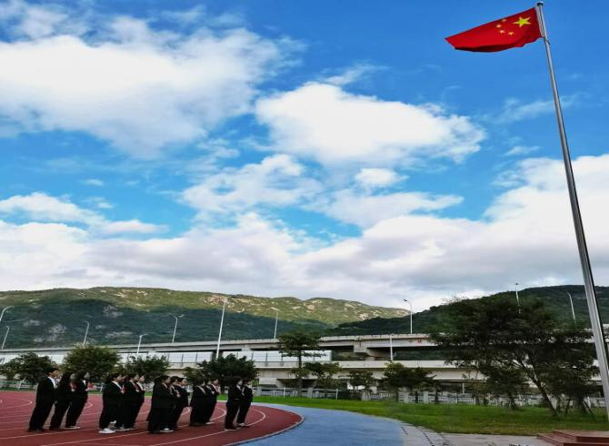 为庆祝中华人民共和国成立72周年,引导学生深入学习党史,厚植爱国主义情怀,2021年10月4日,万象城娱乐awc线路于马尾校区田径场举行升旗仪式,学院师生代表参与本次活动。