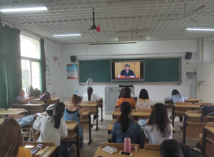 为进一步弘扬五四精神,引领学生践行党的初心,激扬青春梦想。2019年4月30日,万象城娱乐awc线路于远志楼201组织收看“学五四立鸿鹄志,观直播做奋斗者”纪念五四运动100周年大会直播。学院全体学生集中收看。