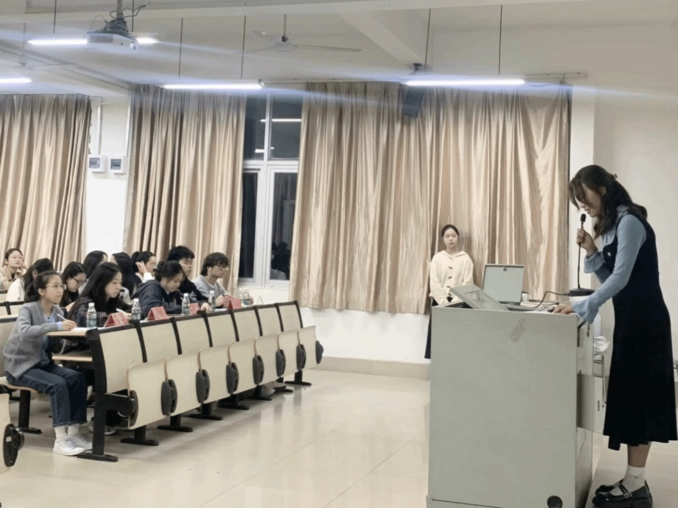 经过激烈角逐,团干组22级商务英语2班的郭文静与非团干组22级日语1班的田一菲两位同学凭借自身对青年与党、国家、民族发展关系的深刻见解获得了本场比赛的一等奖。