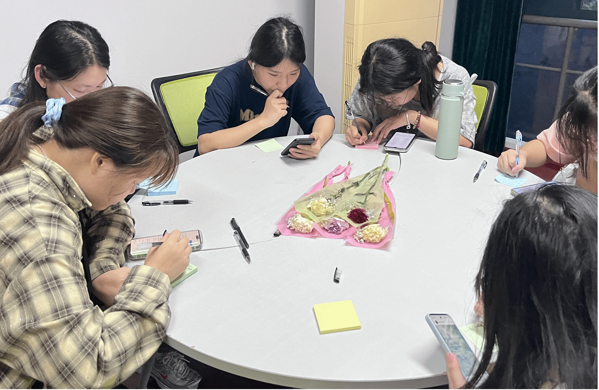 活动现场,“诗花驿站”与“诗花留言墙”两大主题区域热闹非凡。参与者们各展风采,或即兴创作,围绕“春日意象”“校园风物”“青春感悟”挥毫赋诗,在有限时间里写下灵动诗句;或誊抄经典,《春江花月夜》等名篇在笔下重现,辅以个性批注。在结束环节,同学们用诗笺兑换鲜花,实现了“诗成花绽”的美好愿景。